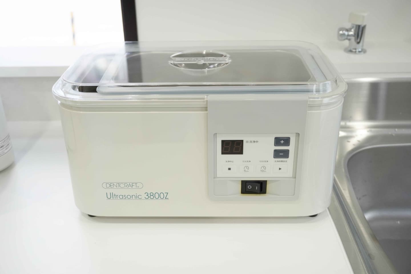 当院では、治療器具を常に清潔な状態に保つため、超音波洗浄を行っています。超音波の細かな振動により、手洗いでは落としきれない器具の細部や複雑な構造部分の汚れまでしっかりと除去します。この工程を行ったうえで、滅菌器による滅菌処理を実施し、より高いレベルの衛生管理を実現しています。