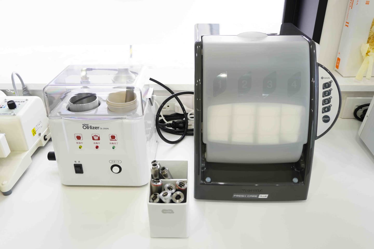 当院では高温オイル殺菌洗浄器と自動注油機を使用し、ハンドピースの内部まで徹底した衛生・品質管理を行っています。