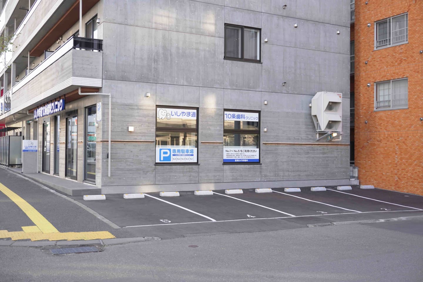 当院の横に5台まで駐車できる専用駐車場を完備しております。お車でお越しの方はお使いください。専用駐車場にはそれぞれNo.1からNo.5まで番号が表記されておりますので、その中から駐車してください。